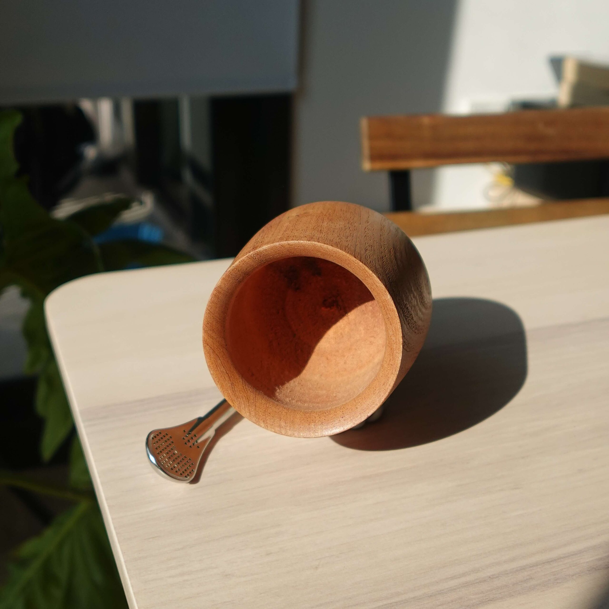 แก้วชามาเต้ไม้แท้ ผลิตจากไม้ Calden ซึ่งเป็นไม้ท้องถิ่นของอาร์เจนตินา ผิวสัมผัสเรียบ สีไม้โทนอุ่น ให้ลุคธรรมชาติ เหมาะสำหรับการใช้งานในชีวิตประจำวัน ใช้ดื่ม Yerba Mate แบบดั้งเดิม หรือชงชาใบและชาสมุนไพร